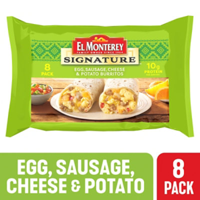 El Monterey Signature Breakfast Burritos Egg Sausage Cheese Potato 8 Count 36 Oz Randalls